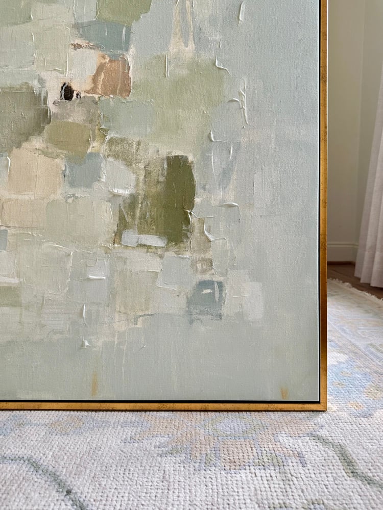 Original 30x40" mixed media painting on gallery wrapped 1.5" canvas. Please note paintings are sold unframed (painting is shown mocked up in antique gold frame). Frames are available at an additional cost in choice of finish (antique gold, gold, white). To add a frame to your painting, add the painting to your cart and then browse to the frame listings and add the 30x40" frame to your cart. I will mount the frame to the painting before shipping/delivery. Paintings without frames ship in 2-3 business days. Framed paintings need additional processing time, so please allow an additional 1-2 weeks for pieces to be shipped.