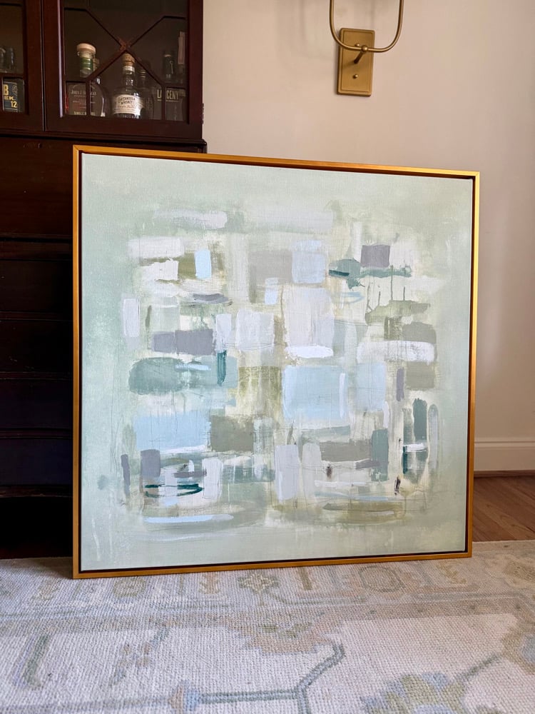 Original 36x36" mixed media painting on gallery wrapped 1.5" canvas. Shown mocked up in a gold leaf frame. Paintings are sold unframed. Frames are available at an additional cost in choice of finish (antique gold, gold leaf, yellow gold, white). To add a frame to your painting, first add the painting to your cart and then browse to the frame listings on my site and add the 36x36" frame to your cart. I will mount the frame to the painting before shipping/delivery. Paintings without frames ship in 2-3 business days. Framed paintings need additional processing time, so please allow an additional 2-3 weeks for pieces to ship.