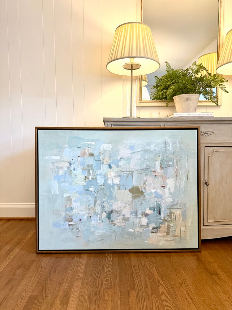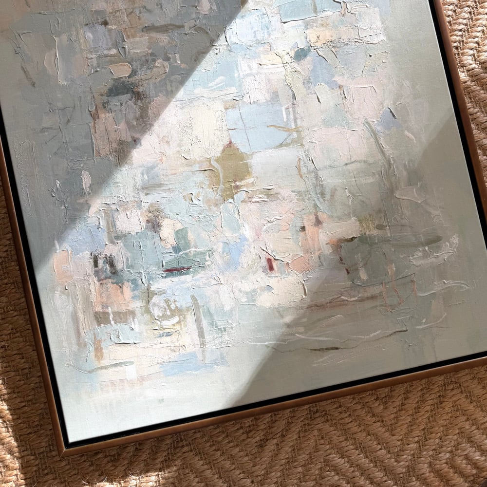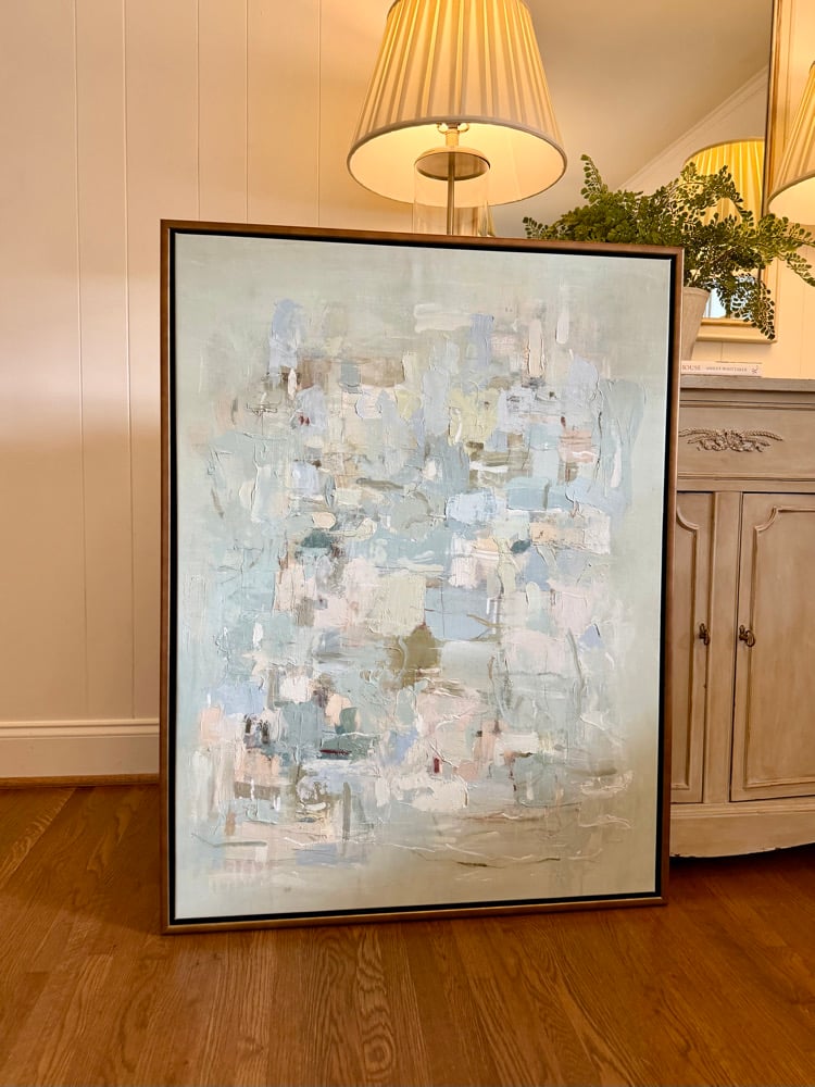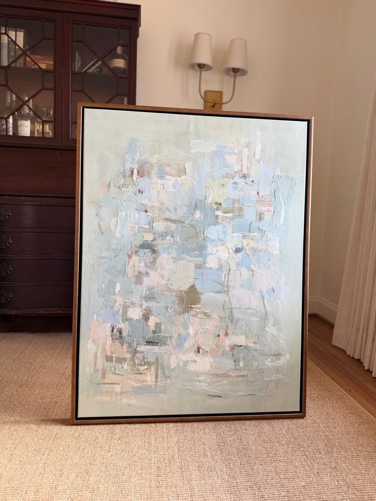 Original 30x40" mixed media painting on gallery wrapped 1.5" canvas. Shown in antique gold frame. Paintings are sold unframed. Frames are available at an additional cost in choice of finish (antique gold, gold, white). To add a frame to your painting, first add the painting to your cart and then browse to the frame listings on my site and add the 30x40" frame to your cart. I will mount the frame to the painting before shipping/delivery. Paintings without frames ship in 2-3 business days. Framed paintings need additional processing time, so please allow an additional 2-3 weeks for pieces to ship. Each painting is signed, titled, and dated on back. All sales are final. Please feel free to contact me with any questions or for additional photos prior to purchase.